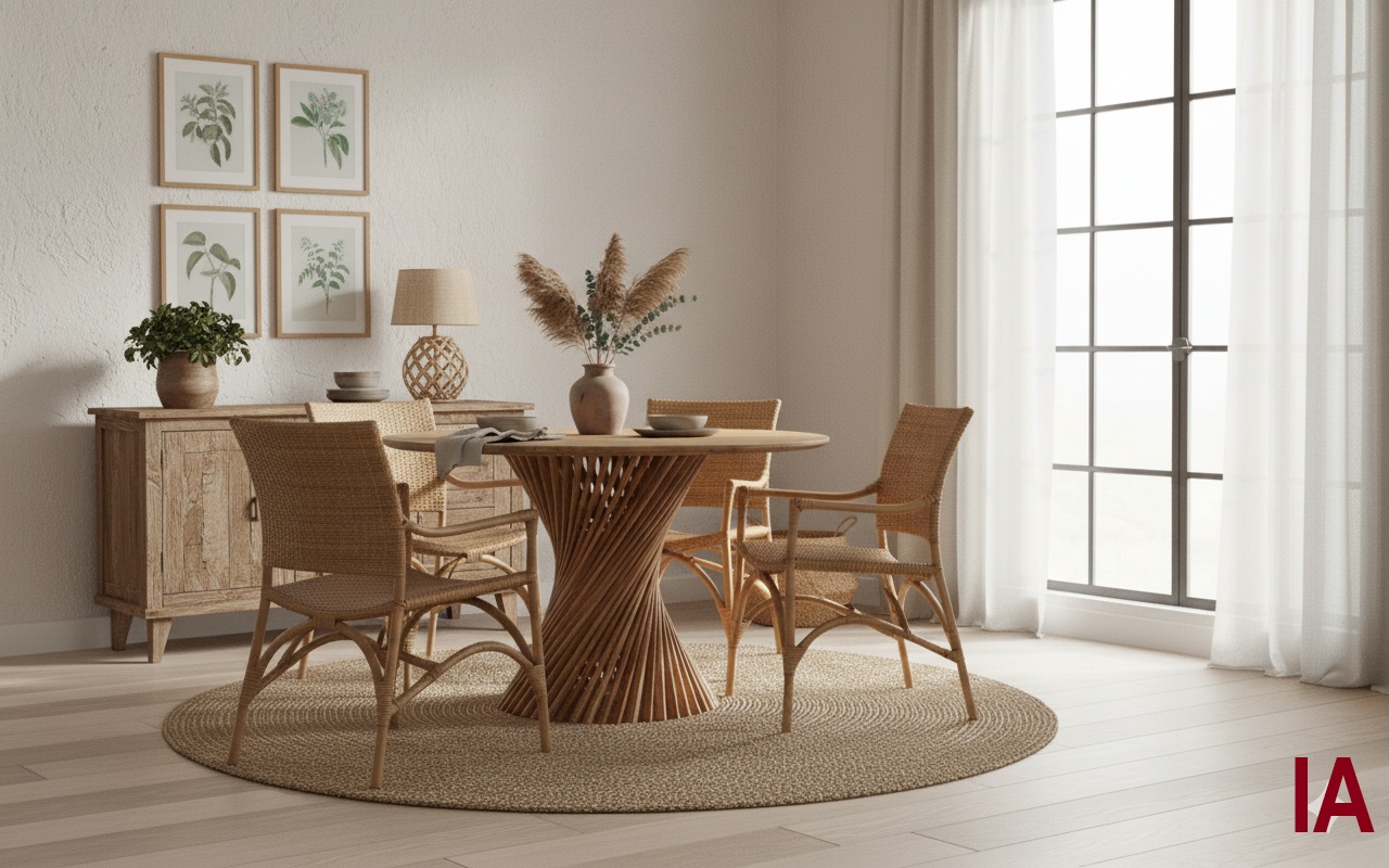 Esta elegante set de 2 sillas con brazos fusiona la calidez de los materiales naturales con un diseño artesanal de gran belleza. Su estructura, fabricada en bambú ofrece una combinación perfecta de resistencia y ligereza. El respaldo y el asiento están tapizados con trenzado de ratán natural, tejido con precisión para aportar frescura, flexibilidad y un toque distintivo de tradición. Los cantos, cuidadosamente cosidos con tireta natural, refuerzan la solidez de la pieza y realzan su acabado artesanal. Esta silla no solo garantiza comodidad y durabilidad, sino que también añade un aire cómodo y elegante.