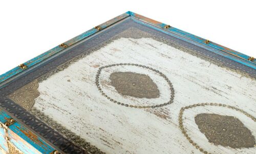 - ACABADO AZUL Y BLANCO ENVEJECIDOS: 🎨 La pintura desgastada y vibrante en azul turquesa y blanco le da un carácter vintage y bohemio inigualable. ¡Cada imperfección es una historia de diseño!