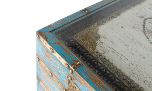 MESA CENTRO SHILPEE: AZUL BOHO. LATÓN TROQUELADO. ¡UN TESORO VINTAGE DE CARÁCTER IRRESISTIBLE! 💎🌊
