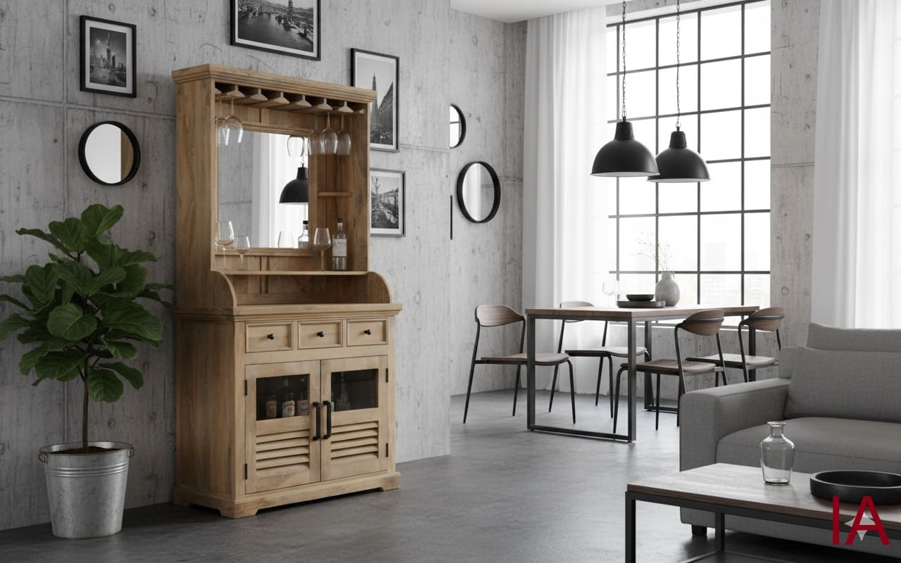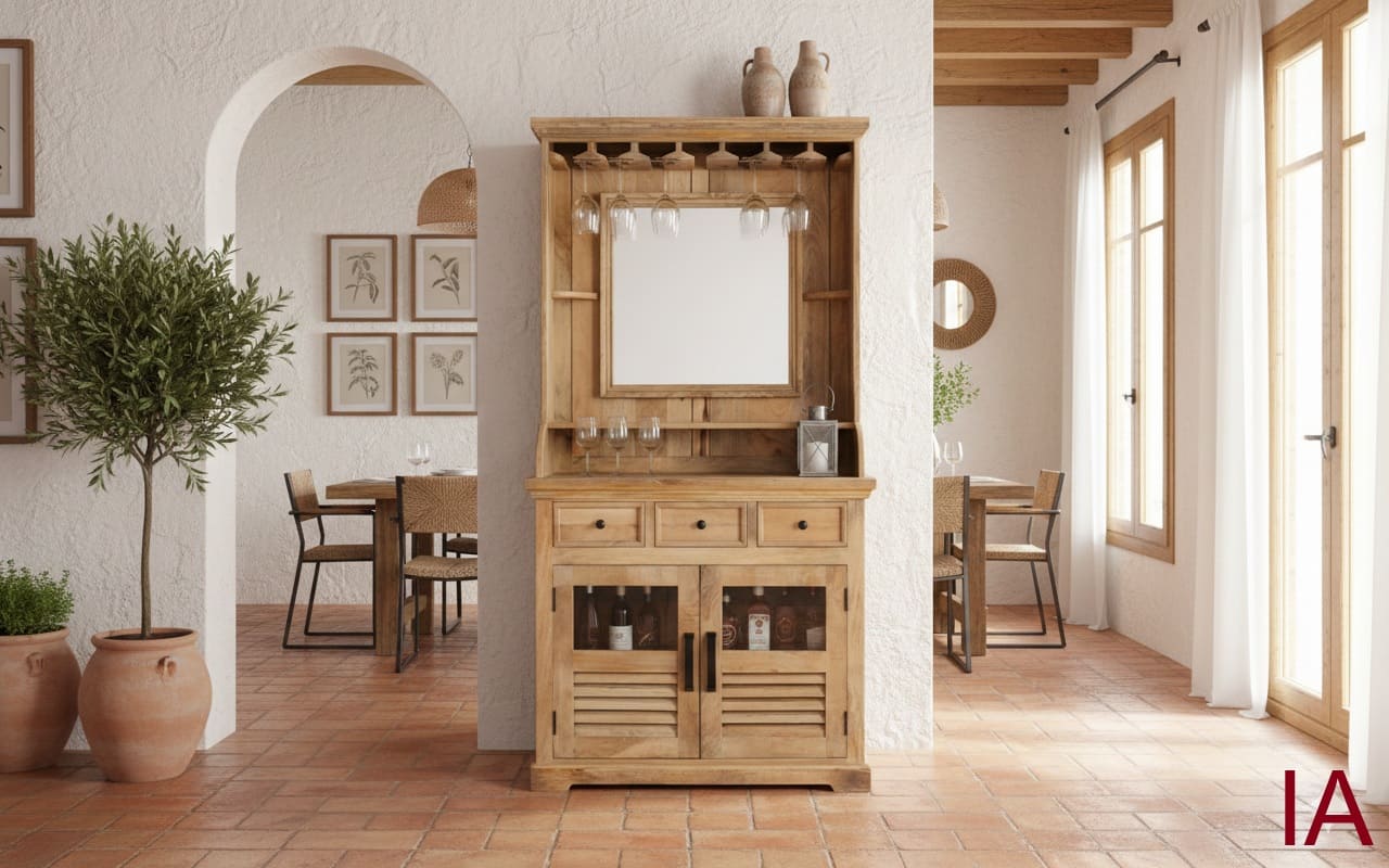 MUEBLE BAR SOLLER: LUJO MEDITERRÁNEO, MADERA MACIZA Y UN ESCENARIO PROPIO PARA TUS MEJORES MOMENTOS. ☀️🥂