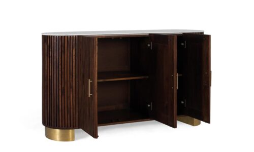 ¿Tu salón pide a gritos sofisticación y diseño orgánico? 🤯 El APARADOR SUDUT no es un mueble; es una PIEZA ESCULTÓRICA que fusiona la solidez del mango en nogal con la opulencia del mármol. Sus curvas, el latón dorado y la textura acanalada crean un diseño que es pura EXCLUSIVIDAD Y ESTATUS. Si buscas una pieza agresiva, funcional y que grite riqueza, ¡DEBES ADQUIRIR ESTA OBRA DE ARTE AHORA MISMO!