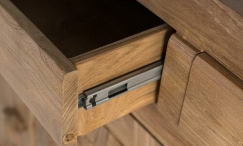CAJONES: Presentan un TIRADOR CIRCULAR TALLADO directamente en la madera, integrando el diseño.