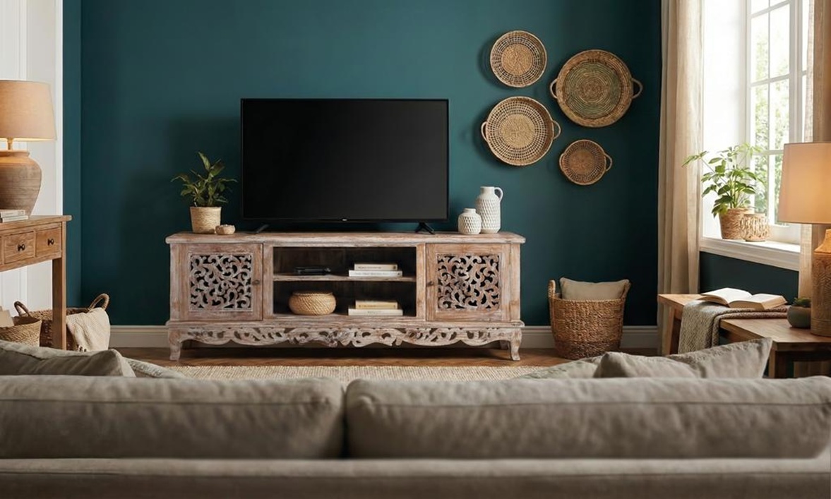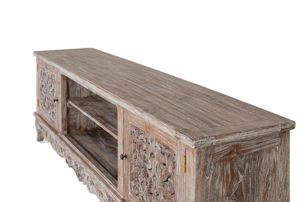 💥MUEBLE TV TAMPAN: TECA MACIZA. CALADO ARTESANAL. ¡EL LUJO BALINÉS EN TU SALÓN! 🕌📺
