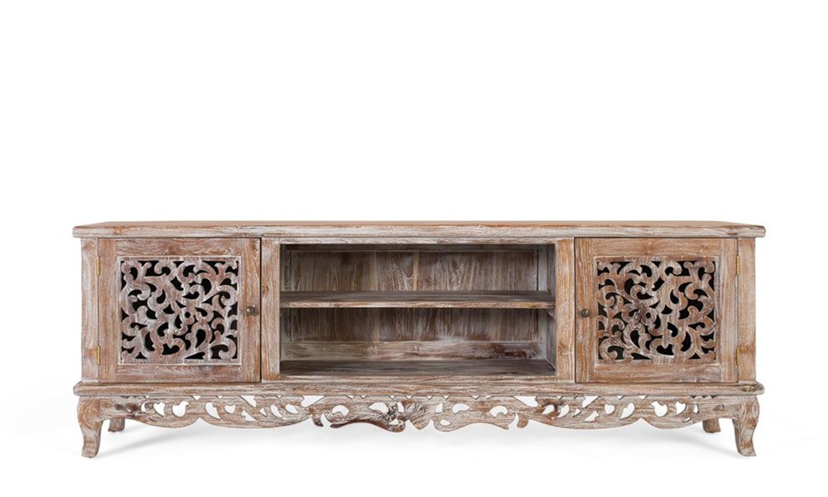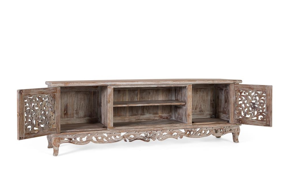 El MUEBLE TV TAMPAN es la inversión más inteligente en diseño. Su tallado a mano y su robustez lo convierten en una pieza única que eleva inmediatamente el nivel de tu salón. ¡Deja de comprar muebles de serie! ¡Invierte en la personalidad, el carácter y la exclusividad del TAMPAN! 🏆