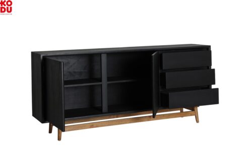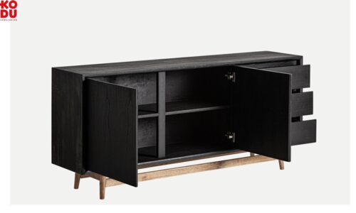 Este aparador es un 50% modernidad urbana (el negro) y un 50% calidez nórdica (la base de madera). Es el mueble que complementa cualquier espacio con un toque de sofisticación contemporánea, sin imponerse. Es decorativo y práctico. ¡No encontrarás otro aparador que maneje el contraste con tanta maestría! ¡Invierte en una pieza que te define! 🏆