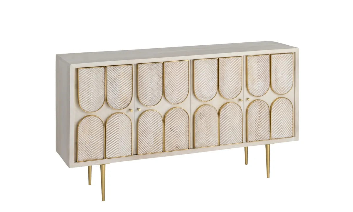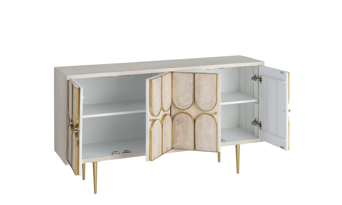 APARADOR TIRSA (152 CM): MADERA MACIZA DE MANGO, PERFILADO EN DORADO Y DISEÑO ESCULTÓRICO ARTESANAL. ¡LA PIEZA DE ALTA COSTURA QUE TU HOGAR EXIGE PARA DESTACAR! 🪵✨🏛️