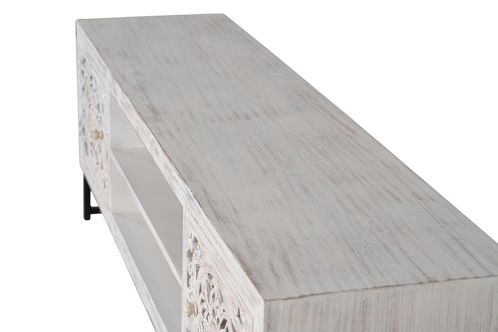 MUEBLE TV UMAID: MANGO MACIZO TALLADO. BLANCO ENVEJECIDO. ¡EL TRONO BOHO CHIC PARA TU PANTALLA! 🕌📺