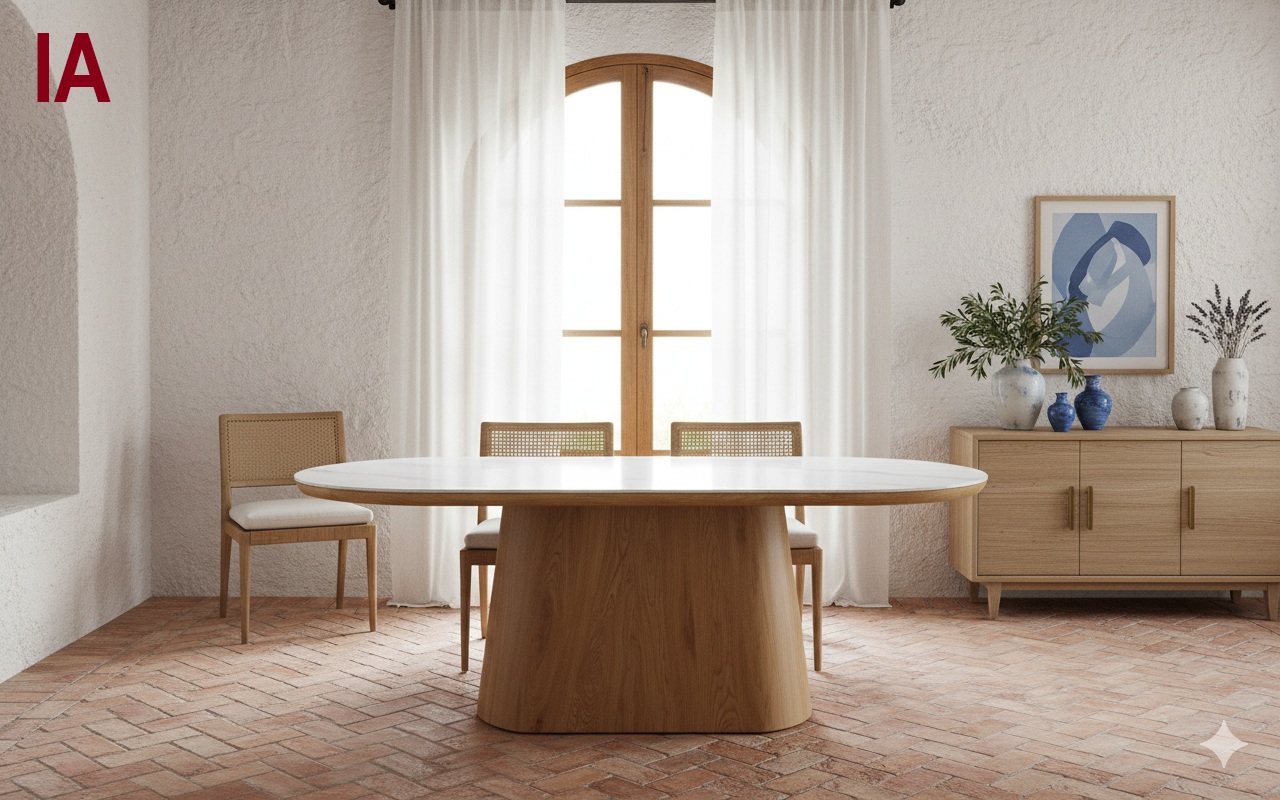 Mesa de Comedor Ovalada Voila de 200 x 100 x 75 cm, tapa cerámica veteada.