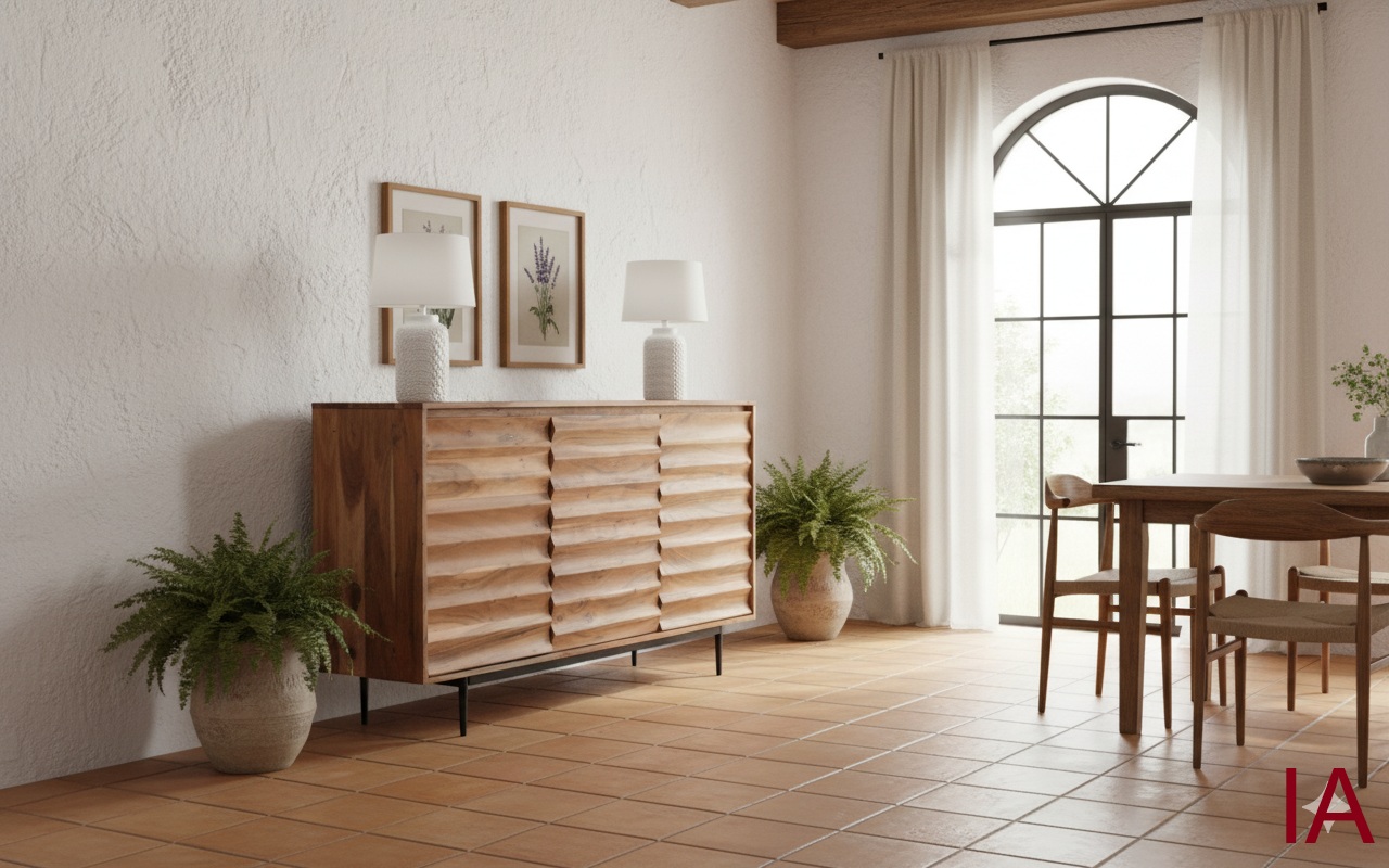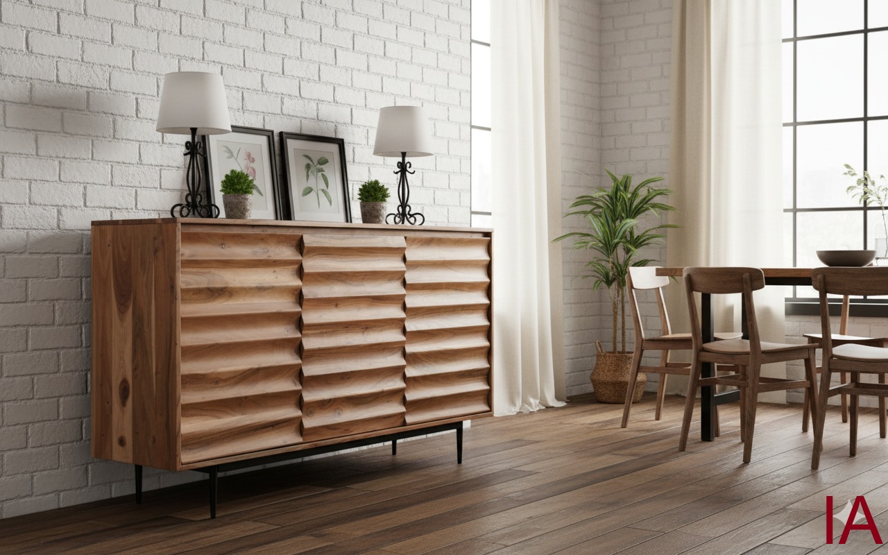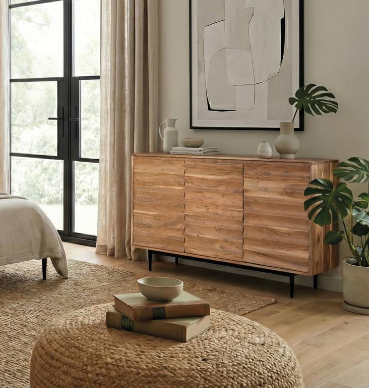 APARADOR WAVE: ACACIA MACIZA. FRENTES ONDULADOS. ¡EL DISEÑO ORGÁNICO QUE TE HACE DESTACAR! 🌊🌳