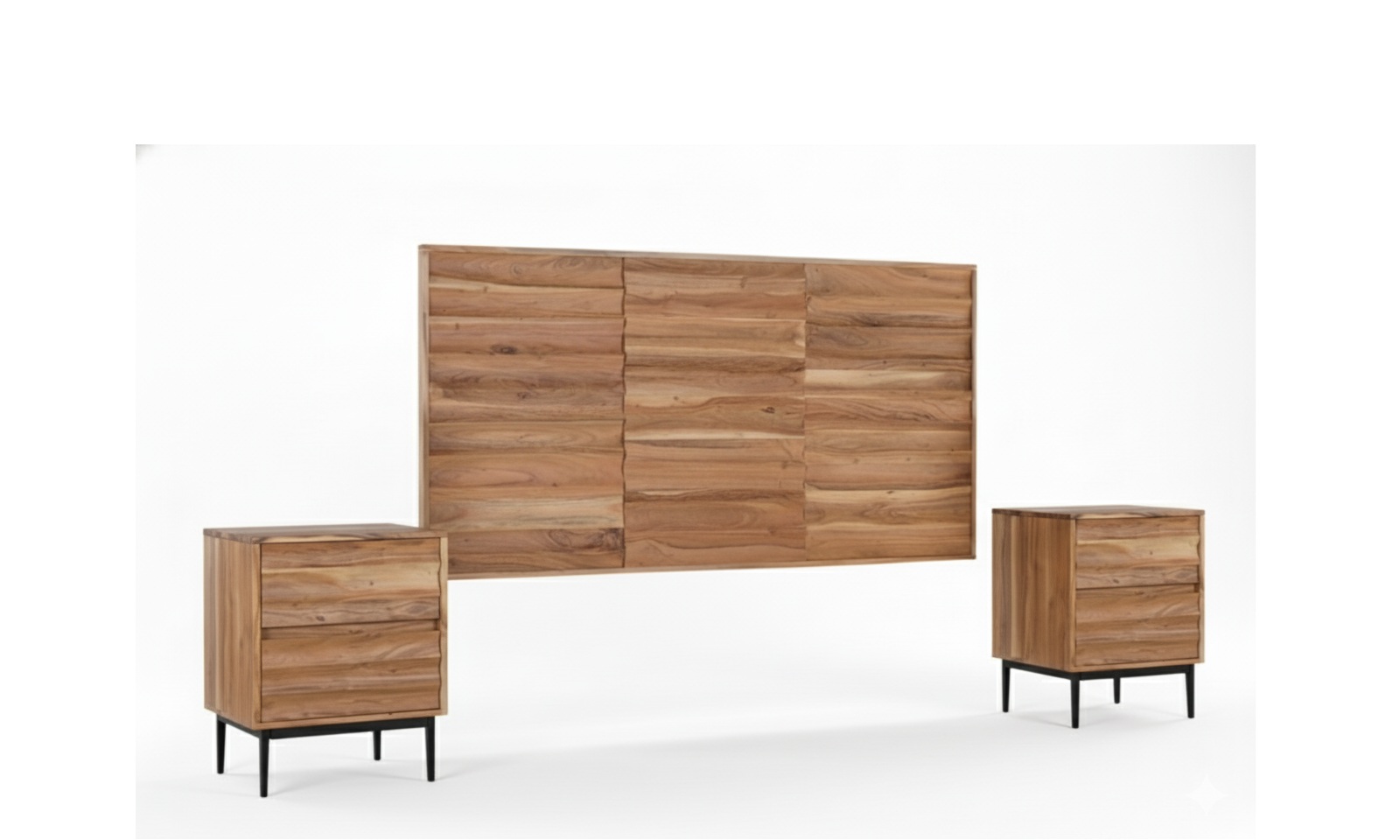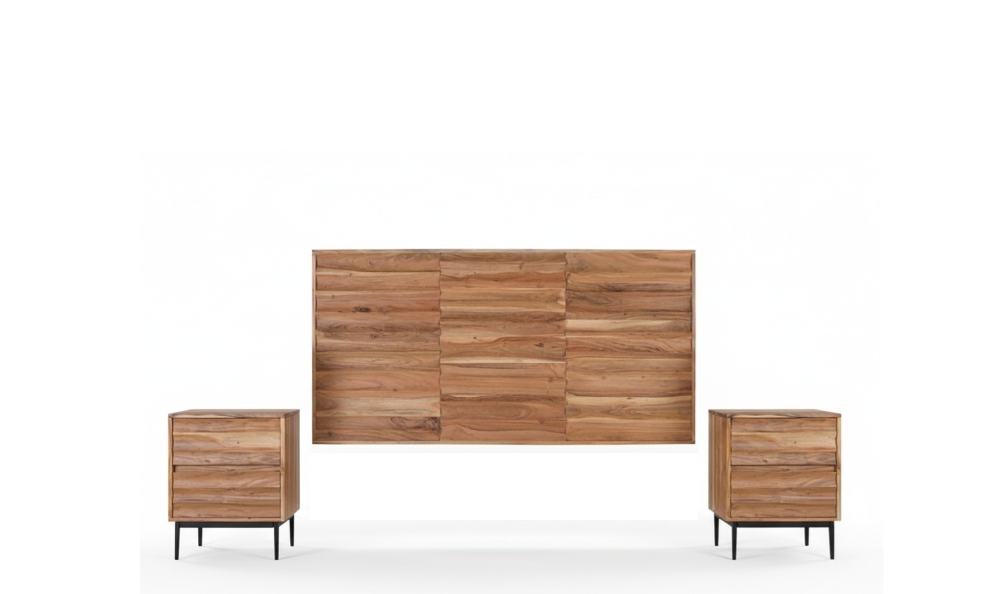 DORMITORIO WAVE (CABECERO + MESITAS): ACACIA MACIZA. RELIEVE ESCULTÓRICO. ¡EL LUJO FLUIDO EN TU ESPACIO! 👑🌳