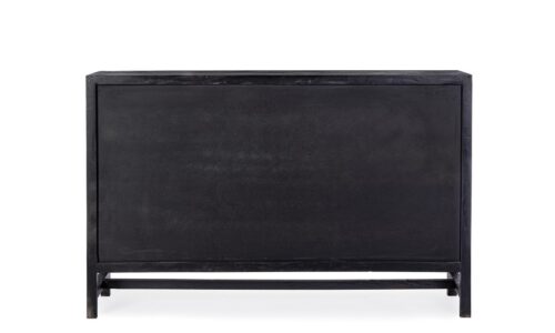 Este elegante aparador de 125 cm de ancho es la fusión perfecta entre diseño contemporáneo y detalles naturales. Fabricado en madera maciza de mango con un exclusivo acabado en negro a poro abierto, su superficie mantiene la textura visible de la veta, aportando carácter y autenticidad.